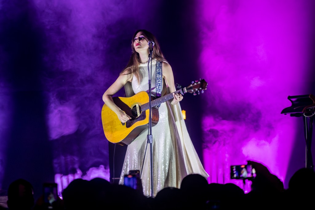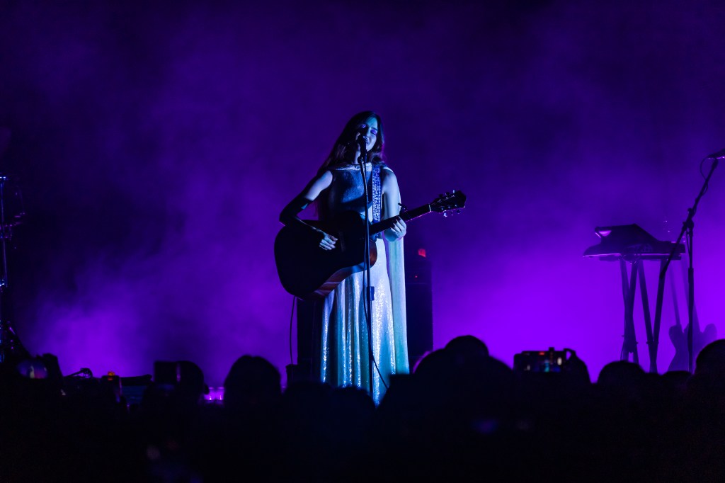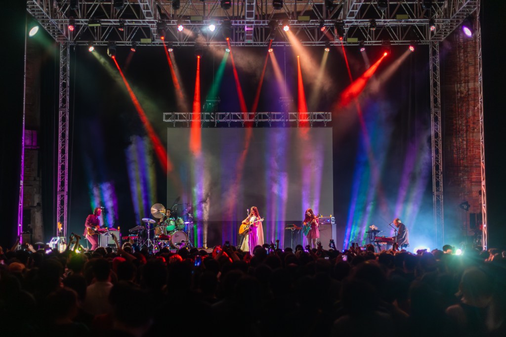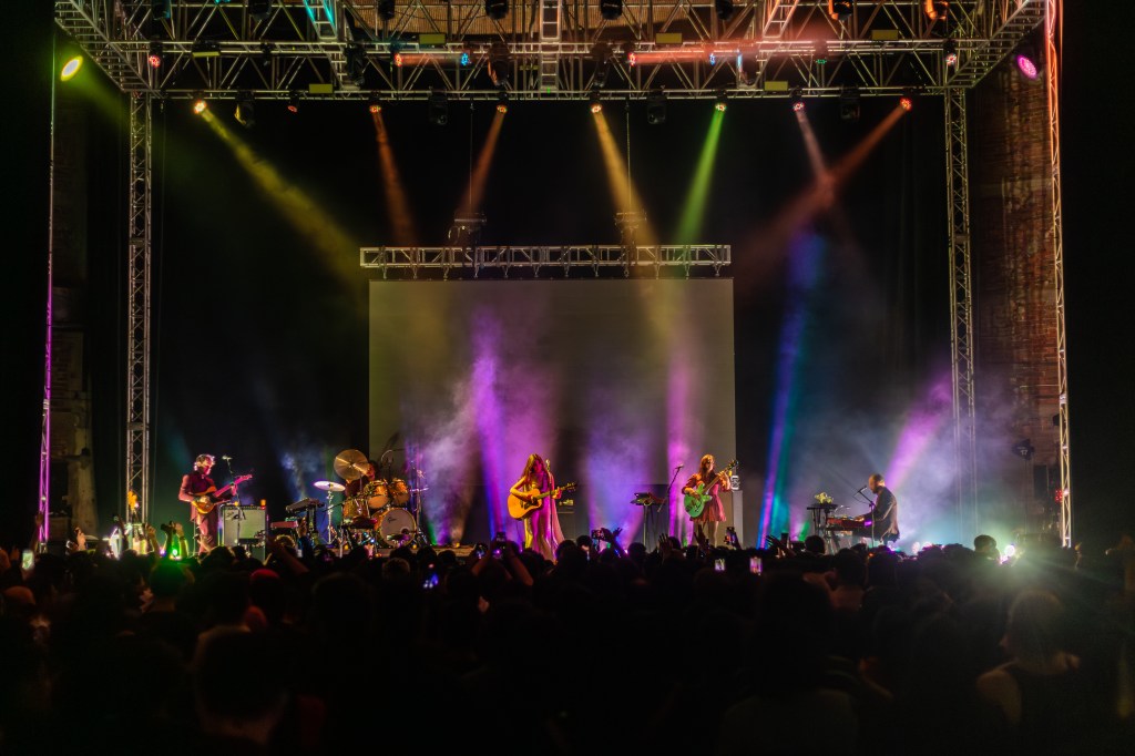Ante un escenario ornamentado por la tenue luz de unas velas artificiales, la gente se entregó de lleno ante la aparición de Weyes Blood y sus músicos. Desde las primeras palabras de “It’s Not Just Me, Is Everybody”, un coro de voces se convirtió en el eco de la compositora, quien continuó con “Children of the Empire” y “Diary”.