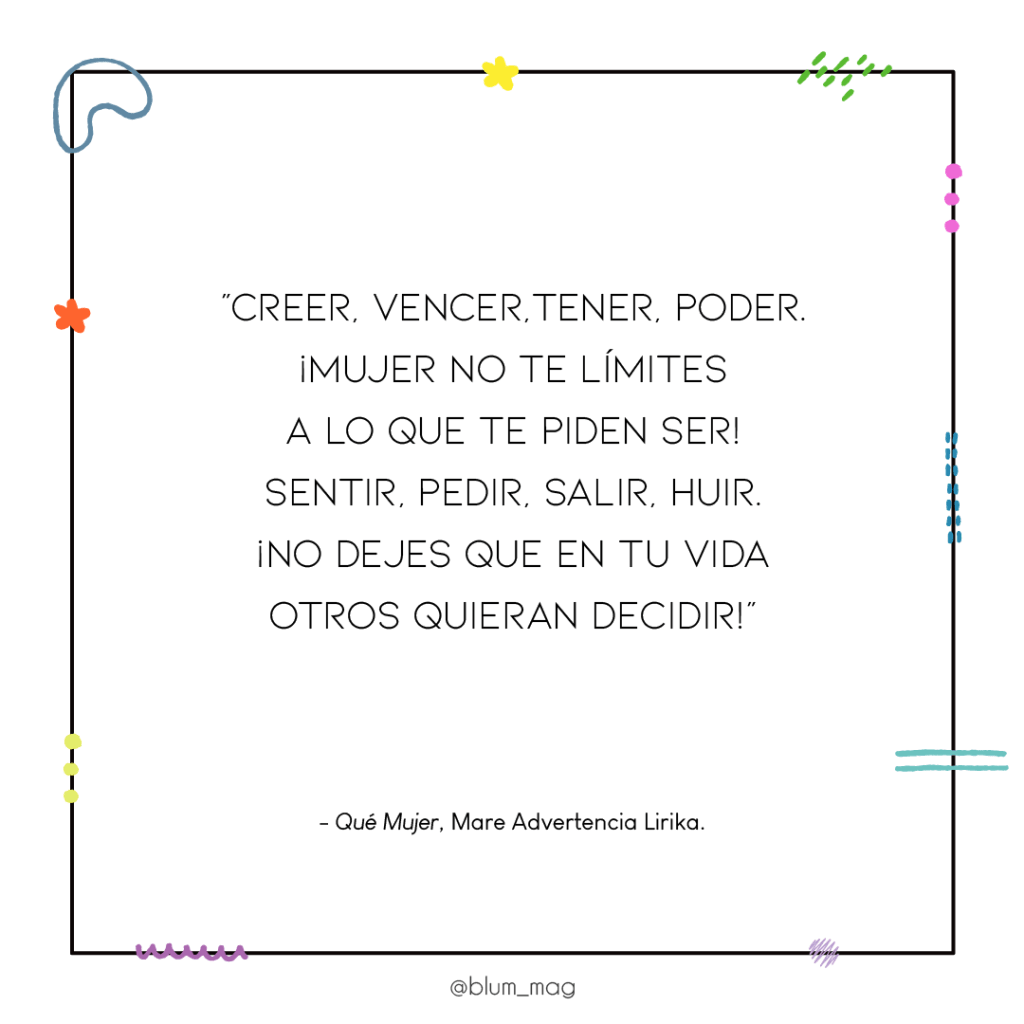 Las voces de las músicas se unen para destapar la rabia, la tristeza y el dolor, pero también para impulsar la libertad, la rebeldía y el poder. Es, a través de la música, que nos encontramos. ¡Vivan las mujeres en la música!