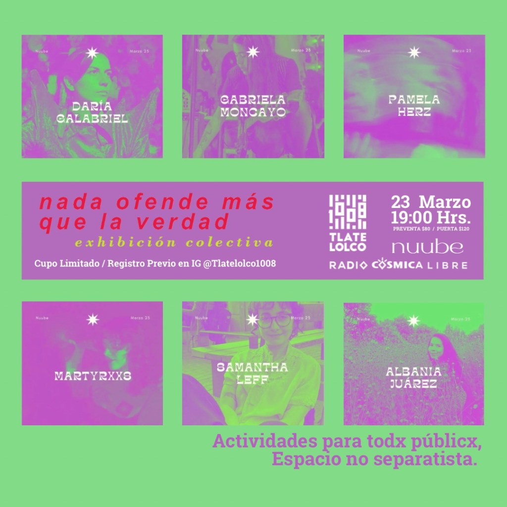 El 23 de marzo, se llevó a cabo el segundo evento de Actos Sonoros, concierto curado y gestionado por la plataforma Nuube, en el marco de la exposición colectiva: «Nada Ofende Más que la Verdad en Tlatelolco 1008«.