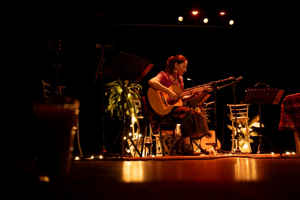 Finalizó su presentación recordando a Violeta Parra, entonando «Gracias a la vida» con la agrupación Cenzontle, 6 mujeres que con guitarras, bombo legüero, ukelele y flauta, unieron su pasión por la música latinoamericana, para compartirla ante un público conmovido por este recorrido musical que Soledad Ulloa supo entrelazar con la música y las raíces que nos unen en América Latina.