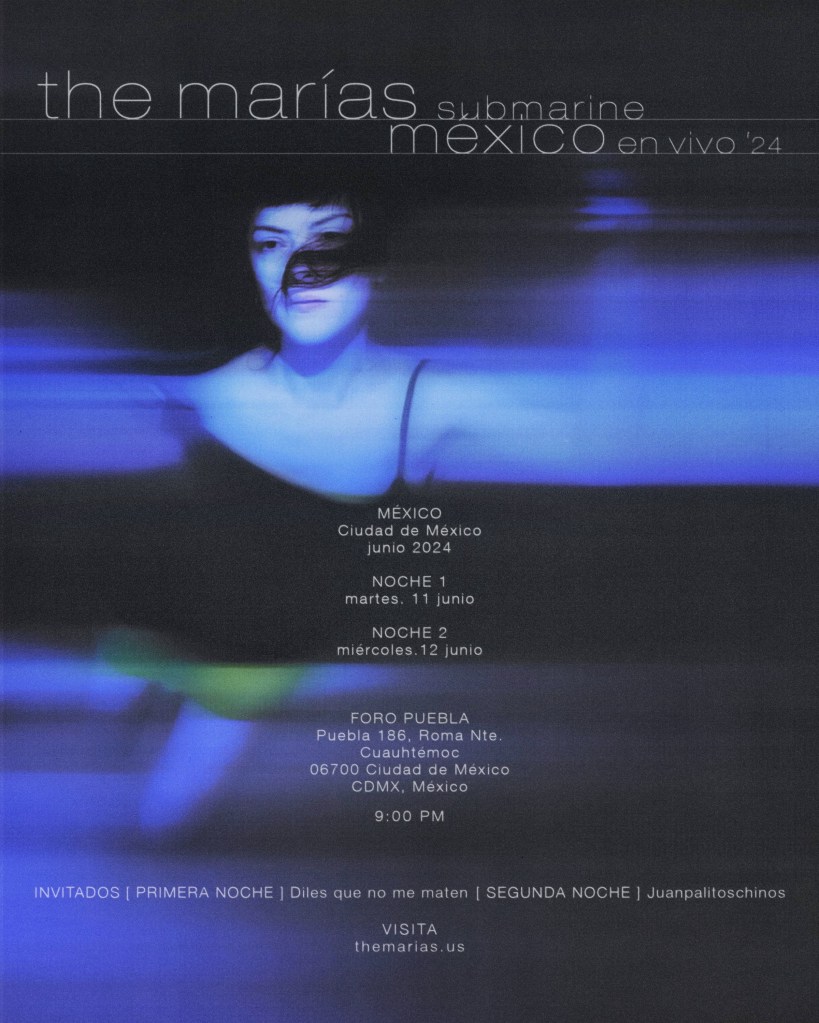 Como parte de las sorpresas que traerá el estreno de este material, The Marías le dará la bienvenida a Submarine en México. El encuentro se llevará a cabo el 11 y 12 de junio en el Foro Puebla de la Ciudad de México.