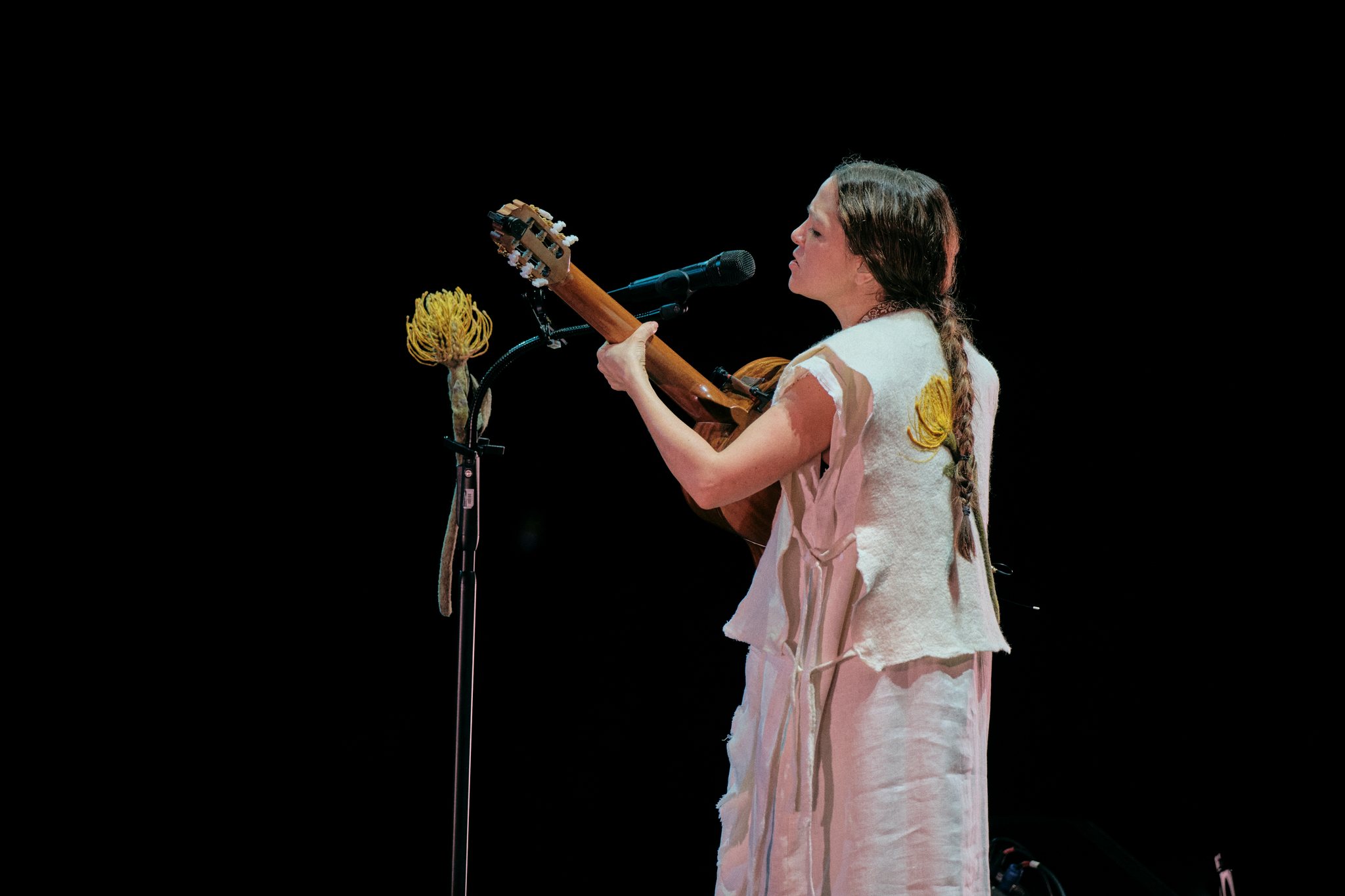 Luego de revelar la esencia y el significado de la flor protea, Natalia reverenció la noche con “Vine solita”, canción que interpretó con una solemnidad que conmovió hasta las lágrimas. La música desnudó el escenario y se plantó con la virtuosidad que la caracteriza para entonar “Lo que construimos”, “Un derecho de nacimiento”, con la que exaltó su estrecha relación con la protesta social, y “Hasta la raíz”, una carta de amor a su madre.