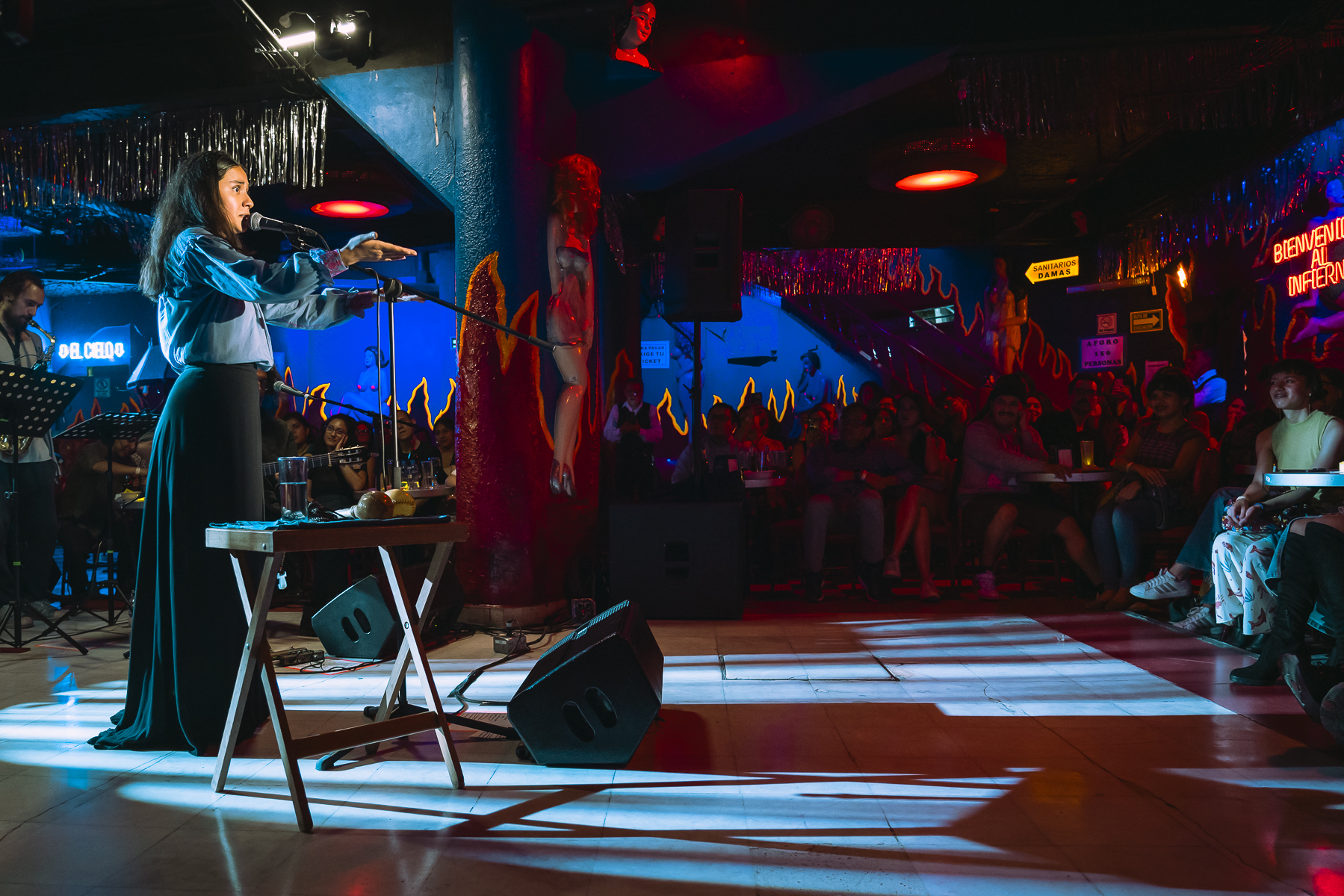 En una esquina discreta, en pleno corazón de la colonia Obrera, se alza uno de los recintos más emblemáticos de la década de los cincuenta: el Barba Azul, un cabaret con una atmósfera rojiazul que, esta noche, ha alterado su cotidianidad para recibir a Laura Itandehui, una de las voces más virtuosas de nuestros tiempos, y a su Gran Ensamble, liderado por Gustavo Guerrero.