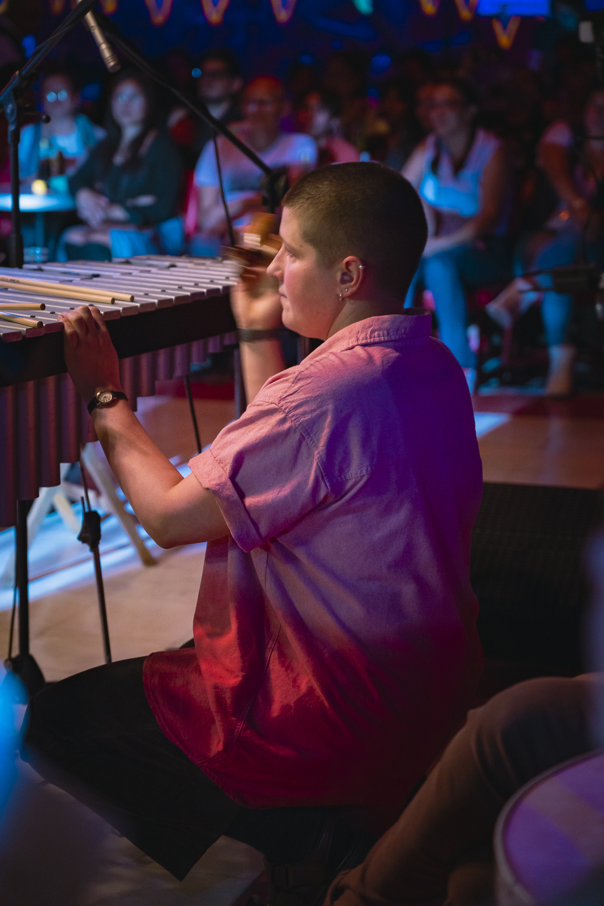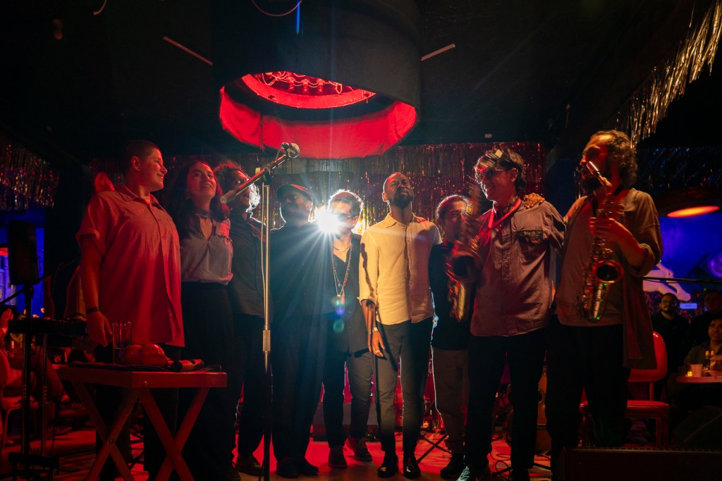 “¡Bienvenidos, bienvenidas, bienvenides! ¡Esta es una fiesta!”, exclamó ante un centenar de miradas fascinadas por su presencia. Con el tintineo de las copas y las llamativas siluetas femeninas que adornan el lugar, el público se unió fervientemente a los coros de “¿No Que No?”, una genialidad que fusiona guaguancó, bossa nova y salsa. “Es muy emocionante esta serie de conciertos. Es el producto de mucho esfuerzo, cariño y talento”, mencionó, tras reconocer la esencia de la noche como una celebración a la alegría y a la vida.