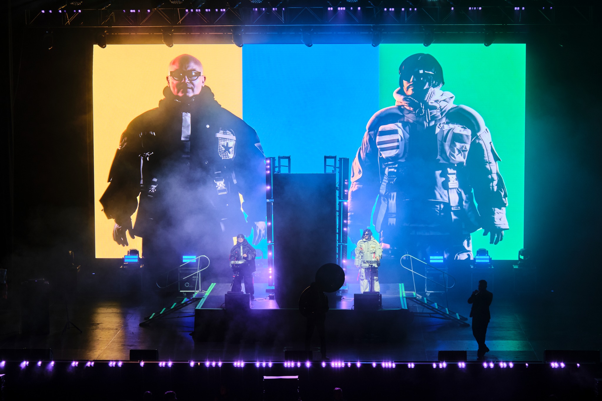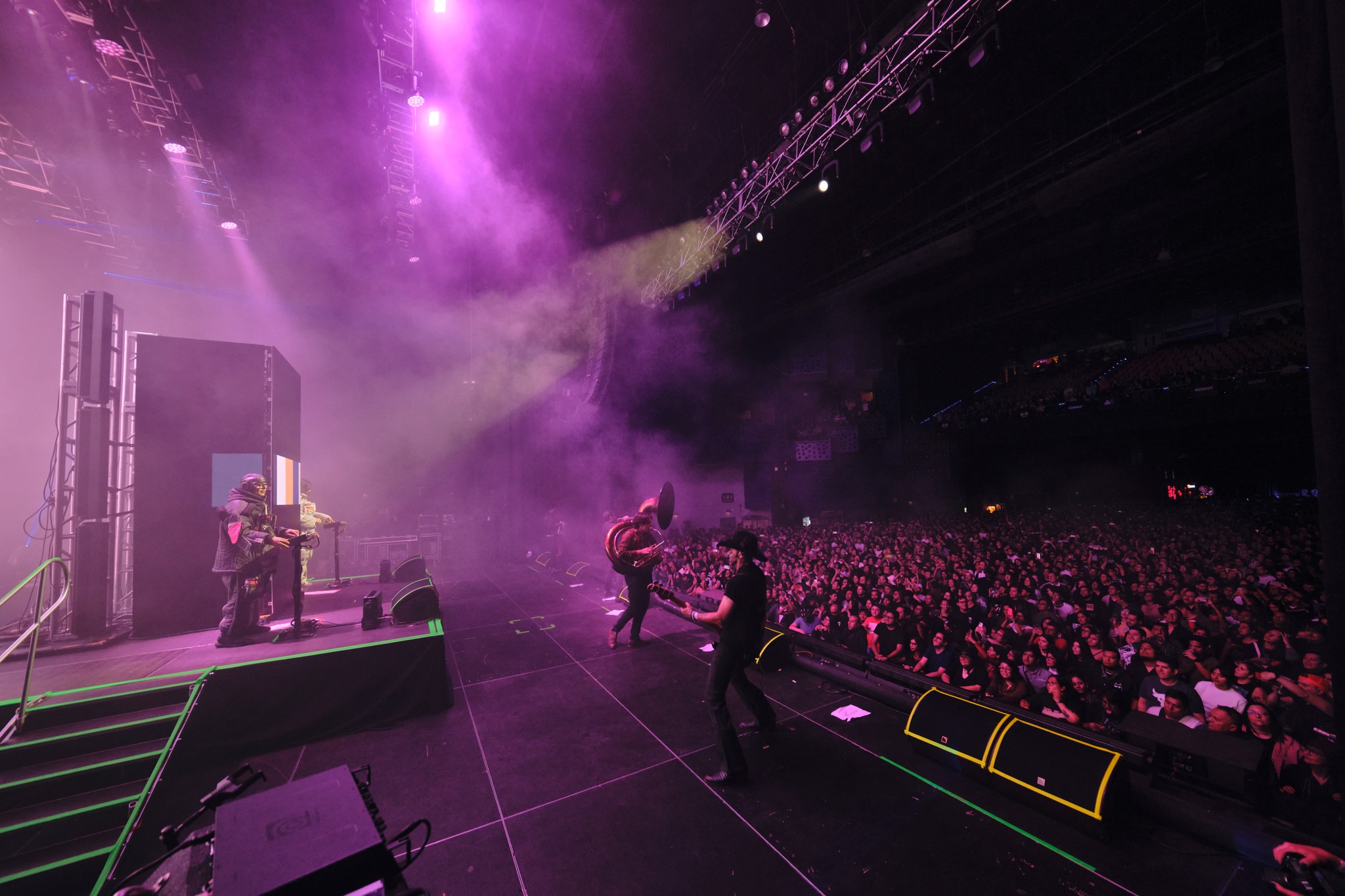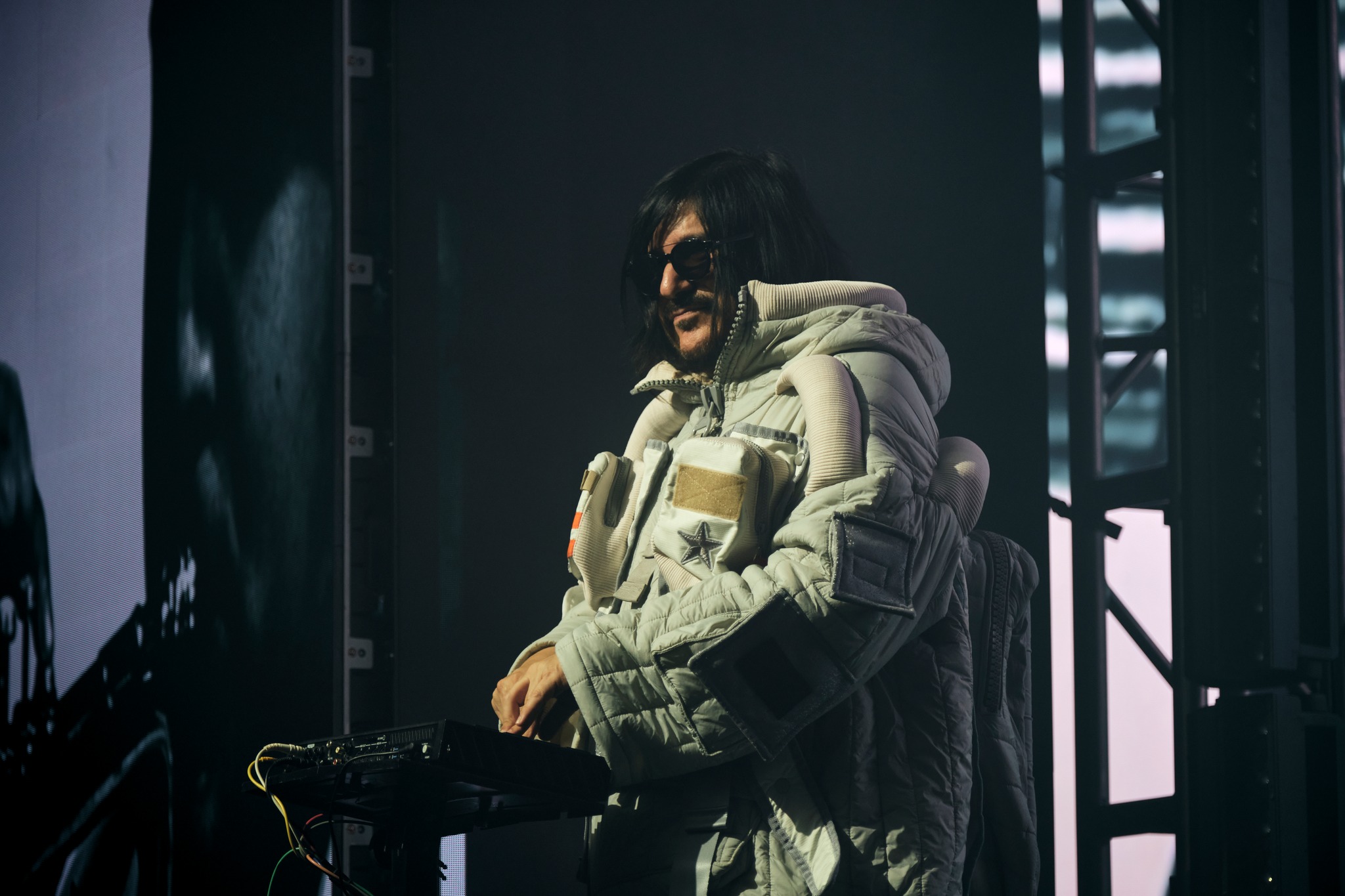 La dupla de Baja nos dio la bienvenida con temas nuevos, así pudimos conocer un poco sobre su próximo material discográfico. «Baby Let’s Dance» desató una atmósfera espacial. El recinto se llenó de sonidos futuristas, que se consolidaron más tarde con «Tijuana Bass» y «Sueño Fronterizo«.